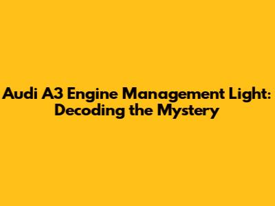 The engine management light on your Audi A3 doesn't have to be a cause for panic. By understanding the common causes, knowing what to do when it illuminates, and taking steps to prevent issues, you can keep your A3 running smoothly for years to come. Whether it's a simple fix like tightening the gas cap or a more complex repair, addressing the problem promptly is always the best approach.