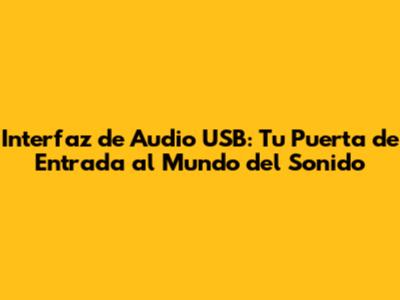 Interfaz De Audio USB: Guía Para Principiantes