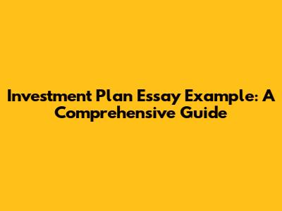 Investment Plan Essay Example: A Comprehensive Guide