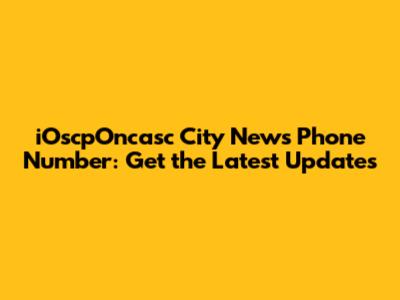 IOscpOncasc City News Phone Number: Get The Latest Updates