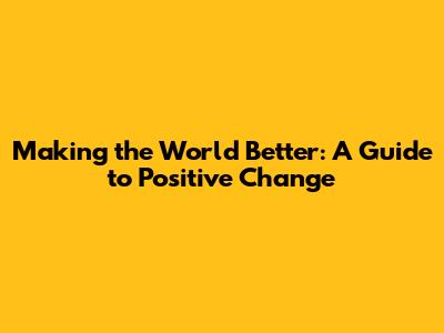 Making The World Better: A Guide To Positive Change