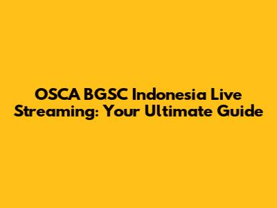 OSCA BGSC Indonesia Live Streaming: Your Ultimate Guide