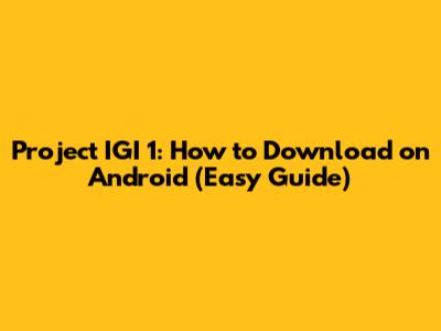 Project IGI 1: How To Download On Android (Easy Guide)