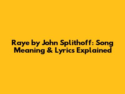 Raye By John Splithoff: Song Meaning & Lyrics Explained
