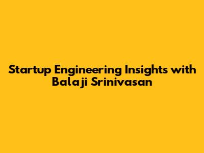 Startup Engineering Insights With Balaji Srinivasan