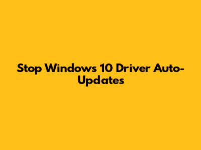 Stop Windows 10 Driver Auto-Updates