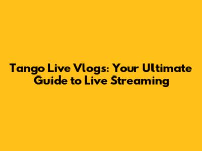 Tango Live Vlogs: Your Ultimate Guide To Live Streaming